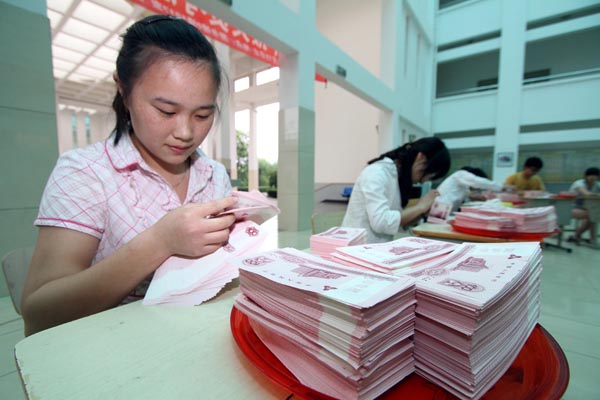 “点钞大赛,第一轮单指单张,现在开始!”一声令下,所有的参赛选手飞速从桌上拿起一刀练功券,娴熟地拆捆、执钞,左手将钞票从桌面上擦过,拇指顺势将钞票向上翻成微开的扇形,右手大拇指和食指轻轻捻动,“钱”就一张张有节奏的弹下,现场只听到刷刷的“数钱”声音,整套动作一气呵成。