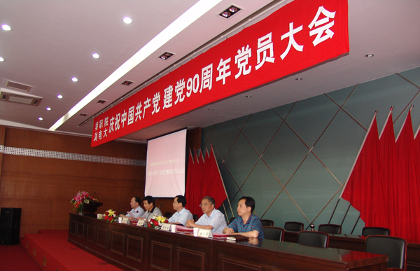 6月27日下午,学校在行政楼1号报告厅隆重召开庆祝建党90周年暨“创先争优”活动表彰大会。党委书记杨柳,党委副书记陈松源,党委委员、副校长丁根林,党委委员、宣传部长吴海燕及全体教职工党员、学生党员代表参加了会议。大会由校长胡世明主持。