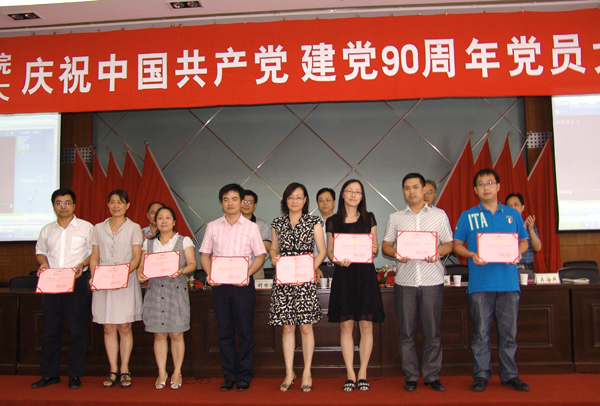 大会在雄壮的《国际歌》声中拉开帷幕。会上,陈松源书记宣读了学校表彰文件,对这两年来涌现出的8名优秀党务工作者、28名优秀党员及10支“创先争优”先锋团队进行了表彰,优秀共产党员代表徐寿芳同志及“创先争优”先进基层党组织代表沈楚同志发表了感言。同时杨柳书记作了在庆祝建党90周年大会上的重要讲话,他指出,中国共产党已经走过了90年的历程,在中国共产党的领导下,中国从一穷二白、灾难深重走向了全面小康、富强和谐,90年来,为了民族解放、社会进步和人民幸福,中国共产党团结和带领全国人民,披荆斩棘,英勇奋斗,取得了一个又一个的辉煌胜利,书写了波澜壮阔的历史画卷,谱写了一曲又一曲胜利的凯歌,铸就了举世公认的丰功伟绩。讲话中杨柳书记对我校近年来党建工作取得的成绩、基层党组织的政治核心作用及党员的先锋模范作用,给予了充分的肯定,并指出当前学校已进入新的发展阶段,发展方向进入战略转型期,体制改革进入攻坚突破期,内涵建设进入整体推进期,面临着前所未有的机遇与挑战。面对 “十二五”期间学校建设和发展的艰巨任务,杨柳书记要求全校各级基层党组织和广大党员,要以创先争优活动为契机,紧紧围绕中心工作和学校发展,深化学习,狠抓落实,努力使基层党组织成为育人成长、创新创业的先锋,努力使教职工党员成为党性坚定、业力精良、为人师表的先锋,努力使学生党员成为理想远大、品学兼优、全面发展的先锋,以改革创新的精神创科学发展之先,争建设和谐校园之优。
