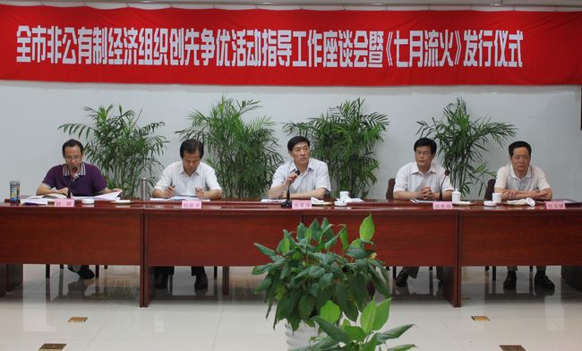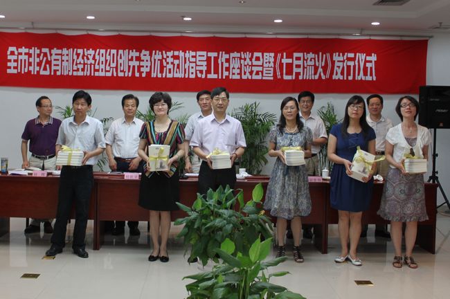 6月30日,市非公有制经济组织创先争优活动指导小组在白鹭迎宾馆会议室为由我校与市委统战部、市工商联、市工商局等共同编印的市非公有制经济组织创先争优典型百例汇刊——《七月流火》举行了隆重的首发仪式。