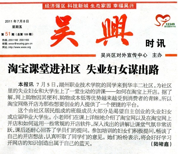 【吴兴时讯】淘宝课堂进社区 失业妇女谋出路