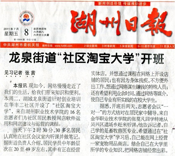 【湖州日报】龙泉街道“社区淘宝大学”开班