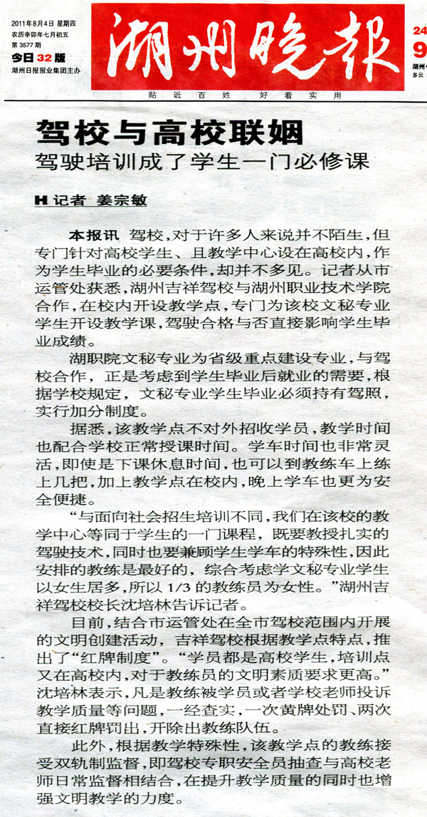 【湖州晚报】驾校与高校联姻