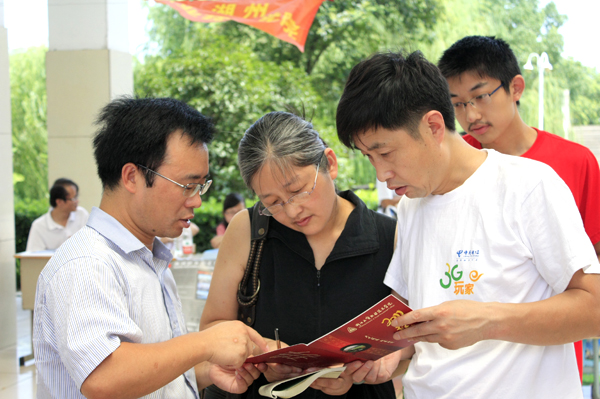 日前,高考文理科第三批分数线揭晓,为给广大考生家长提供及时、权威的志愿填报指导,帮助更好地完成第三批志愿填报,全省主要市地2011年高职高专招生宣传义务咨询系列活动陆续拉开了帷幕。8月6日当天,浙江省普通高校招生研究会高职分会在我校圆顶广场举行2011年“校园开放日”暨高考填报志愿宣传咨询会,来自省内外50余家高职院校为湖州地区考生及家长提供义务咨询服务。
