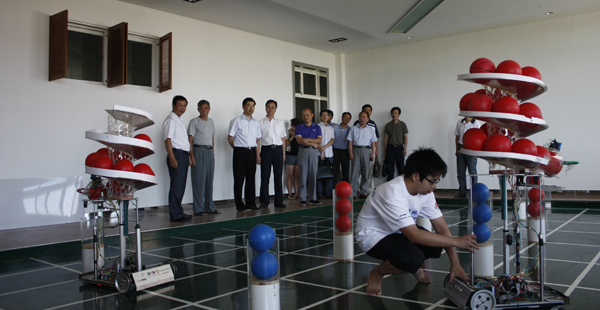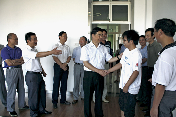 与我校获得2011全国机器人大赛一等奖的参赛选手亲切握手