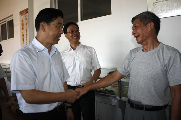 在电子电工技术实训中心,朱书记与现场师生一一握手,详细询问了他们的生活学习,对一年来广大教师取得的丰硕成果表示了祝贺,感谢他们在自己的工作岗位上所作出的贡献。