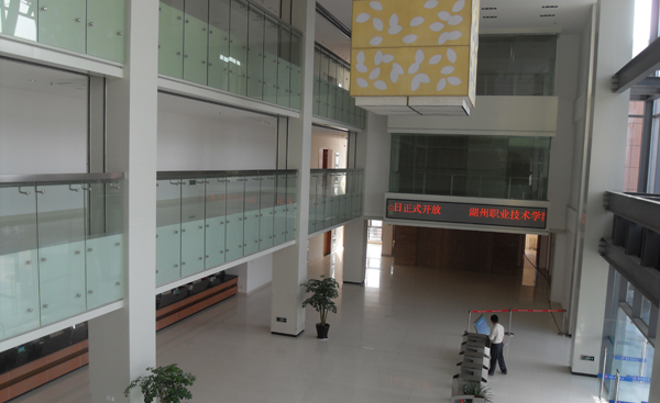 图文信息中心大楼外形整体设计风格新颖、现代、美观,酷似一本正在缓缓打开的书卷,洋溢着浓浓的校园书香文化氛围。图书馆采用“一站式”服务管理模式,读者在二楼服务大厅总入口刷卡进出,实现文献“借、阅、藏”的一体化。图书馆一楼设自然科学书库、二楼设语言文学艺术开架书库、三楼设社会科学开架书库和报刊阅览室(一),四楼设专业文献参考阅览室和报刊阅览室(二),各书库都在风景优美的窗口处布置了阅览座位,阅览环境整洁、优雅;图书馆内设有开水房,免费为读者供应开水。同时,图书馆全通透的玻璃幕墙窗设计,也可使读者在馆内就能饱览校园内美丽的碧玉湖畔风景。
