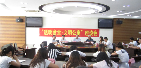 9月15日下午,新宇公司组织召开了“透明食堂 文明公寓”主题座谈会。丁根林副校长、产业处宓卫东处长、学生处李晓英副处长、新宇公司负责人和各部门管理人出席了座谈会,同时还邀请了两位教师代表参加。