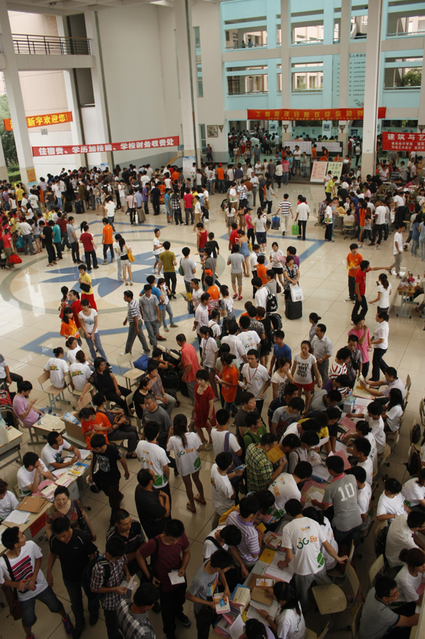 9月17日,正值我校2011级新生入学报到注册的一天,学校各部门全力以赴,全力投入到3000多名年轻学子的迎接工作。截止当天下午5:00,新生报到率达到95%。