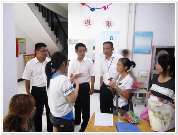 新生报到当晚8点,为了解新生们的生活坏境及入住情况,新宇公司总经理陆高峰,副总经理刘青春、公寓中心主任高志强等人随机走访了各楼内的新生寝室,大部分同学们对学校的住宿条件比较满意,在与新生们进行亲切交流的过程中,对学生提出的一些问题进行了详细解答,并且希望新生们能与新宇公司多交流多沟通,健康快乐的度过大学三年生活。