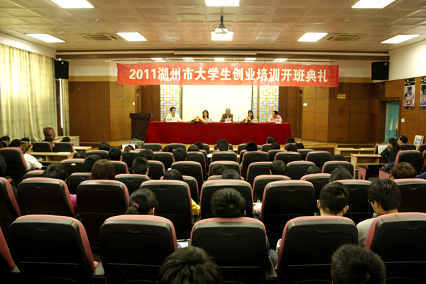大学生创业培训班在湖州市系首次举办。基于我校长期以来在学生就业创业方面的出色业绩,就业局在我校创业就业指导中心、培训中心等相关部门的多次沟通后,决定在我校举办首届大学生创业培训班。使我校有创业愿望、具备创业能力和条件的大学生创业者通过培训能得到更多的创业帮扶,降低创业风险,提高创业成功率。本次培训根据大学生创业的特点,借鉴SYB(Start Your Business的缩写,意为“创办你的企业”)培训课程体系(是国际劳工组织(ILO)和中国劳动与社会保障部积极倡导的专门为创业者量身定做的社会化创业全程扶持指导体系,目的是以创业促进就业),量身定制了培训计划。培训内容包括创业意识培训、创业计划培训、创业计划书制定等,培训班还为学员提供政策咨询、项目推荐等服务。同时帮助培训人员提升创业实绩,政策咨询,创业帮扶,导师指导等。