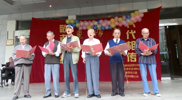 当天上午,国贸分院、红丰老年活动中心、童星幼儿园与国谊出租公司共同举办了以“敬老传统,代代相传”为主题的庆重阳文艺汇演。志愿者们载歌载舞,表达他们对老人的无限敬意与浓浓的祝福。活动中,老人们尽情的欣赏着志愿者精心编排的节目,独唱、朗诵、话剧等,童星幼儿园的小朋友们还深情演唱了《大中国》,让老人们乐此不疲,现场掌声不断,笑声不断,红丰老年活动中心门前的场地上处处洋溢着节日的温情与欢快。
