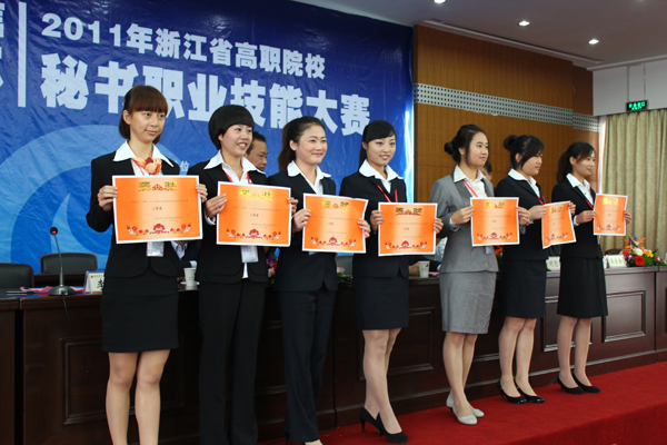 10月21~23日,2011年浙江省高职院校秘书职业技能大赛在我校隆重举行,此次大赛由省教育厅主办,我校承办。经过角逐,由人文与旅游分院杨群欢、沈文中、吴新化、李柯等老师指导的两支代表队分获大赛一、二等奖。