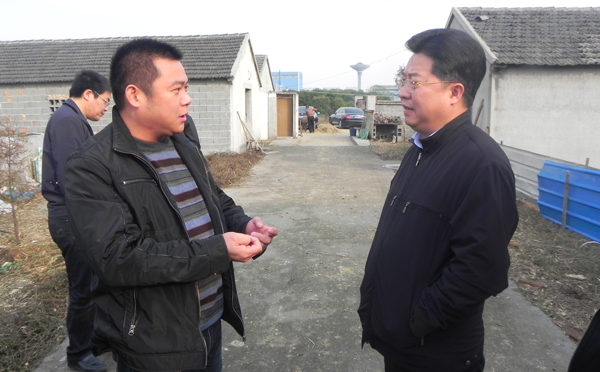 一走进费明峰的基地里,杨建新副市长就热情地与小费聊起了家常,他关切地向小费询问起目前的生产、养殖、销售情况。当了解到明锋湖羊现阶段的运作模式与功效作用时,杨建新赞赏的告诉小费,“生态循环农业作为一种新型的农业发展模式既顺应了发展的态势,也符合整体环境的要求,作为湖州农民学院培养的大学生,就是要让自己具备这样一种与时俱进的素质与能力。”在考察“玉米湖羊生态低碳循环经济园区”后,杨建新一行与费明峰进行了座谈。在了解到明锋湖羊合作社在发展过程中面临着人才、技术缺乏的瓶颈时,杨建新指出:“要合理实行好‘企业+合作社+农户’模式,真正向专业化、现代化的方向发展农业产业。尝试嫁接具备专业人才资源的公司,并将其合理分配至湖羊养殖产业链中的有效环节。”当了解到小费在申建湖羊定点屠宰基地和湖羊交易市场面临的困难时,杨建新副市长表示“政府会尽力支持他创业。”同时鼓励他,“要尽早做好规划,不断坚定信念,进一步利用好农民学院的资源优势,多向结对指导专家请教、咨询,提升自身的资质条件。”