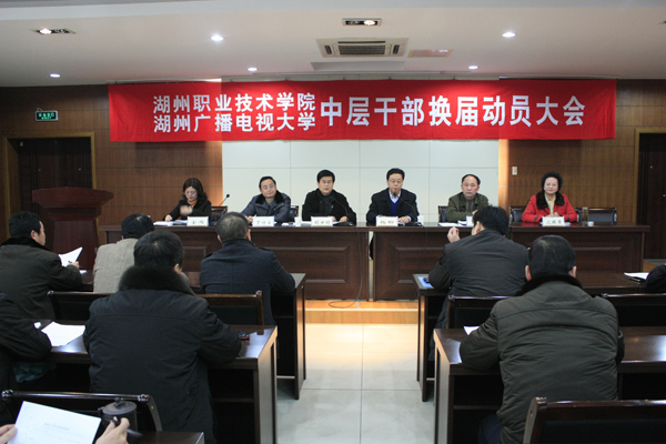 2月10日下午,学校中层干部换届动员大会在2号报告厅召开。校领导杨柳、胡世明、丁根林、丁继安、沈琪芳、金雁出席会议。全体中层干部、各分工会主席、教学办主任、学工办主任、教研室主任(远程教育学院各科长)参加了会议。会议由胡世明院长主持。