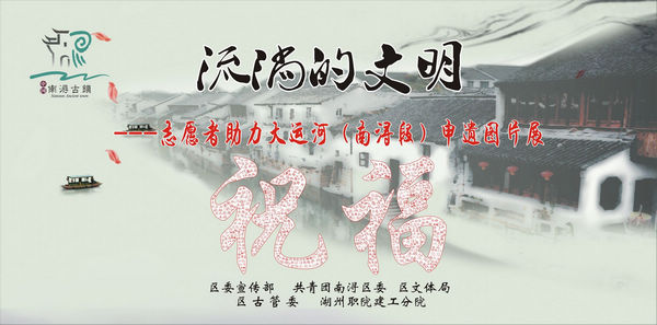 7月21日至8月12日,由南浔区委宣传部、共青团南浔区委、南浔区文体局、南浔区古镇管理委员会和我校建筑工程分院等单位共同举办的“流淌的文明——志愿者助力大运河(南浔段)申遗图片展”在南浔区图书馆展厅展出。