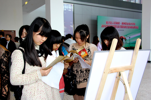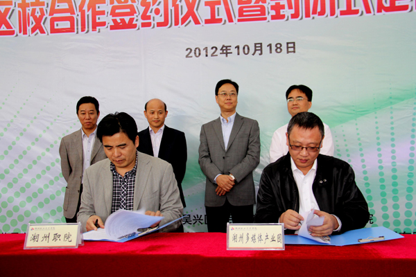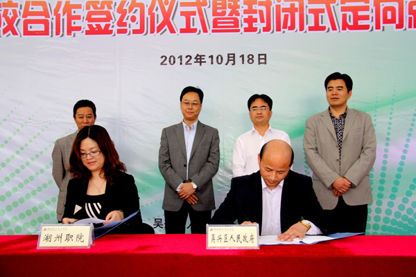 10月18日,吴兴区人民政府•湖州职业技术学院2012区校合作签约仪式暨封闭式定向就业推介会在湖州市公共实训中心隆重举行。吴兴区委常委、组织部部长钱仲良,吴兴区委组织部副部长、区人力社保局局长张惠新,校领导杨柳、金雁、曹金良及学工部负责人等出席了此次仪式。