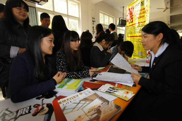 招聘会现场,招聘单位通过播放宣传片、发放宣传资料和面对面交流等各种方式向毕业生介绍公司概况、职业发展方向、人员需求以及选择该单位的理由等等。应聘毕业生投递个人简历更为谨慎,在关心薪资待遇、工作环境的同时更是详细地咨询了新员工未来职业发展规划和合同签订的相关事宜,毕业生就业多了些理性。