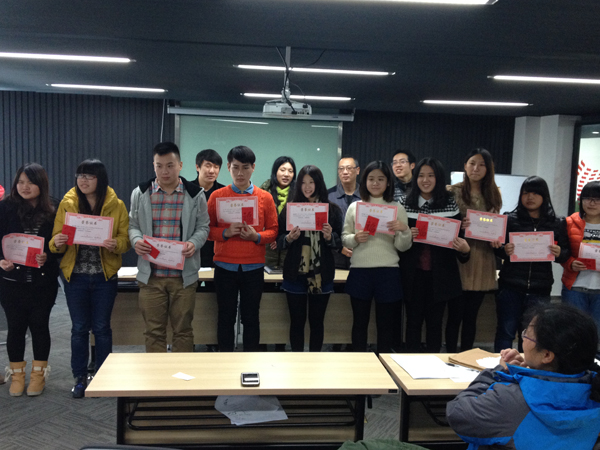 表彰会上,吴兴区商务局副局长陶承欢发表了热情洋溢的讲话,他感谢学校及学生为吴兴区服务外包产业的发展提供了人才支持,对同学在工学结合中表现出良好的责任心和工作热情由衷感动。商务贸易分院负责人从学校人才培养角度,说明工学结合工作的重要意义,在政府和企业的全力支持下,同学们的全力配合和认可下,分院将进一步加大人才培养改革力度,提高人才培养的质量。最后,参与工学结合的企业家和学生都发表了感言,大家一致认为这种人才培养模式非常必要而且意义非凡。表彰会上,还对24位表现优秀的学生颁发了由产业园签发的优秀实习生证书和奖金。