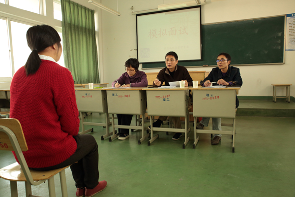 模拟职场,绝对赛场;挑战今日,体验就业。11月底,计算机网络技术、计算机信息管理两个专业开展模拟职场招聘。本次模拟招聘邀请到了湖州市气象台台长黄玲琳、浙大网新集团有限公司华东大区市场经理周迪、网新(天津)软件有限公司和湖州千景电子有限公司市场部经理朱锦宏等4人担任模拟招聘的考官,从应聘着装与礼仪、求职简历设计、汇报技巧以及模拟面试等方面进行考察,共有36名同学参加模拟面试的环节。在模拟的过程中,反映出部分同学回答提问不够自信,对于应聘岗位定位偏高等问题。