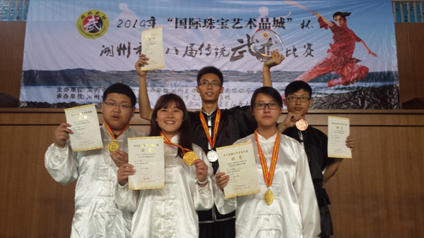 5月18日,湖州市第八届传统武术比赛暨首届武术精英大奖赛在湖州市莲花庄体育馆举行。我校崇德武术协会胡淳、俞柳青、林浩男、俞映伊、夏超宇等五位会员分别参加八式太极拳、五步拳、少林洪拳等三个项目,共获得3金、1银、1铜的好成绩。