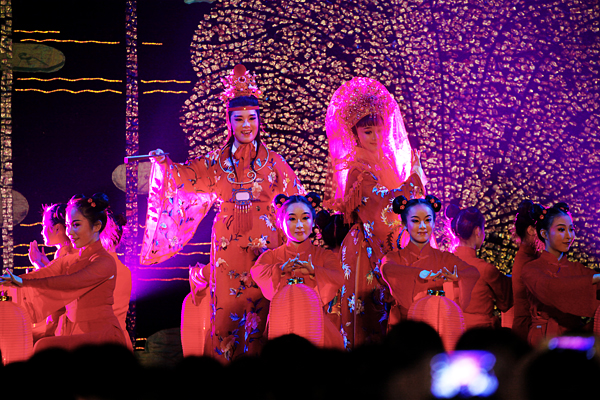 演出在维吾尔族舞蹈《掀起你的盖头来》的热烈氛围中拉开帷幕。动感、娇羞、俏丽,活泼、诙谐、唯美的画面让观众眼前一亮。优美动听的旋律,活泼鲜明的节奏,疾步飞旋的舞姿表现了美丽的维吾尔族姑娘和小伙对美好生活的向往。充满深情的男声独唱《鸿雁》是一首怀念亲人和家乡的歌曲,浓浓的亲情、湛蓝的天空、广阔的草原感染了现场每一位观众。越剧《金玉良缘》、《穆桂英挂帅》那炫目华美的服饰、精湛饱满的表演让观众大开眼界,充分展现了优秀的传统文化和民族文化。从传统戏曲的身段中提炼出来的古典舞《芳春行》讲述了一位妙龄女子踏青春游的情景,给舞蹈带来了新意。独舞《点绛唇》精致典雅,立意独特,舞者精湛的舞蹈技巧让观众叹为观止。男子群舞《草原汉子》身姿矫健、气势威武,表现出专属蒙古男儿的豪放。这群强壮的汉子,手持套马杆,跃马扬鞭,抖擞着青春,洋溢着意气风发,挥洒着骁勇,绽放着豪迈。悠扬绕梁的萨克斯演奏,音色饱满洪亮,风格浓郁醇厚,打动了现场观众。演出在女子舞蹈《剪纸姑娘》中落下帷幕,这支舞蹈根据传统民间剪纸艺术而创作,演员系着红头绳,人物形象活泼俏皮,极具中国特色,赢得了观众阵阵喝彩。