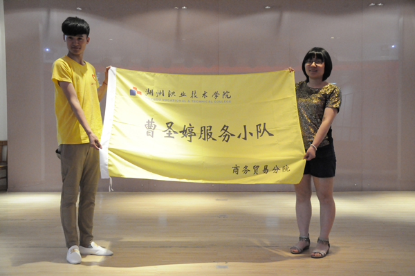 “我只是一名普通的90后,而现在是一个即将毕业、离开母校的大学生,我做的只是我想做、也力所能及的事,此刻我内心有着万千的感慨与不舍。”这是曹圣婷站在三号报告厅演讲台前的开场白。6月5日中午,商务贸易分院“曹圣婷志愿服务小队”在这里成立,曹圣婷为志愿服务小队授旗。