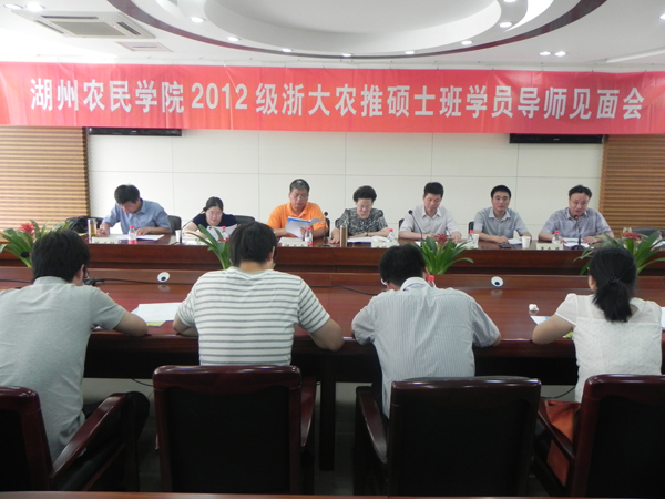 6月14日,湖州农民学院在组织召开2012级浙大农推硕士班导师见面会,副校长、农民学院院长沈琪芳;浙江大学农业与生物技术学院副院长祝水金出席此次活动。浙江大学硕士论文指导教师代表以及农民学院2012级农推硕士班的全体学员参加活动。据悉,湖州农民学院2012级农推硕士班是农民学院招收的第二届在职研究生班。目前,已经完成了第一阶段课程的学习,即将进入论文研修阶段。为了保障硕士班学员顺利完成学业,并在规定的时间拿到学位证书,湖州农民学院积极与导师及浙江大学进行协调,组织召开此次导师见面活动,为学员与导师的沟通创造了良好的条件。