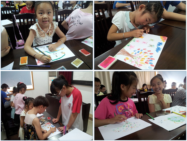 在都市家园、红丰等社区,来自我校工商管理学院的大学生志愿者们带来了他们的特色项目——手指创意画,为社区的七十多名孩子送上了一堂有趣的绘画课。孩子们无需画笔,只需小小的指尖沾上各种颜料,在纸上按出指印,再添上几笔就成了一幅美丽的指纹图画。在老师的指导下,孩子们在纸上不停地挥动着小手,个个兴奋不已,一幅幅漂亮的作品瞬间便呈现在大家面前。