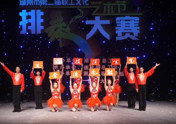 来自湖州各地的近20支队参加了比赛,大赛上的舞蹈有的激情四射,有的华丽优美,精彩纷呈。我校老师一身红色演出服,洋溢着青春朝气,以一首节奏感很强的《舞动中国》和自选曲目《传奇》感染着每一位观众,赢得了台下阵阵掌声。最后,经专家和评委们的评判,以优异的成绩获得了“湖州市第二届职工文化艺术周劳动成就梦想健身排舞大赛”银奖。