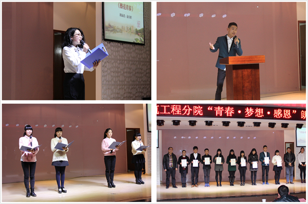 为丰富分院学生的校园文化生活,传递积极向上的校园正能量,提供展示自我的活动平台,近日,建筑工程分院在学校三号报告厅举办“青春•梦想•感恩”朗诵演讲大赛决赛,分院党总支负责人、辅导员及近200名师生参加观看了比赛。
