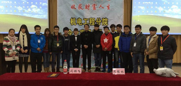 12月25日晚,机电工程分院党团活动室学生满座,浙江辛子精工机械股份有限公司人力资源部经理闵鹏飞先生作客分院新一期“企业家导师论坛”,和同学们分享他的职业生涯规划和人生履历。