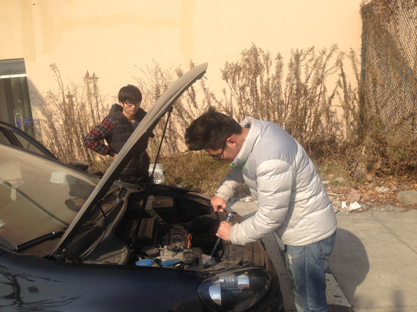 每周四的下午是陆鹏晖老师指导的汽车专业志愿者团队一周里最忙碌的日子。帮老师的汽车做常规保养,接待教职工对于私家车常见故障和用车要点的咨询。从2014年3月开始的这项志愿服务活动深受教职员工的欢迎和好评,尽管今年这个团队的成员已经增加到了20多人,但他们的服务还是供不应求。