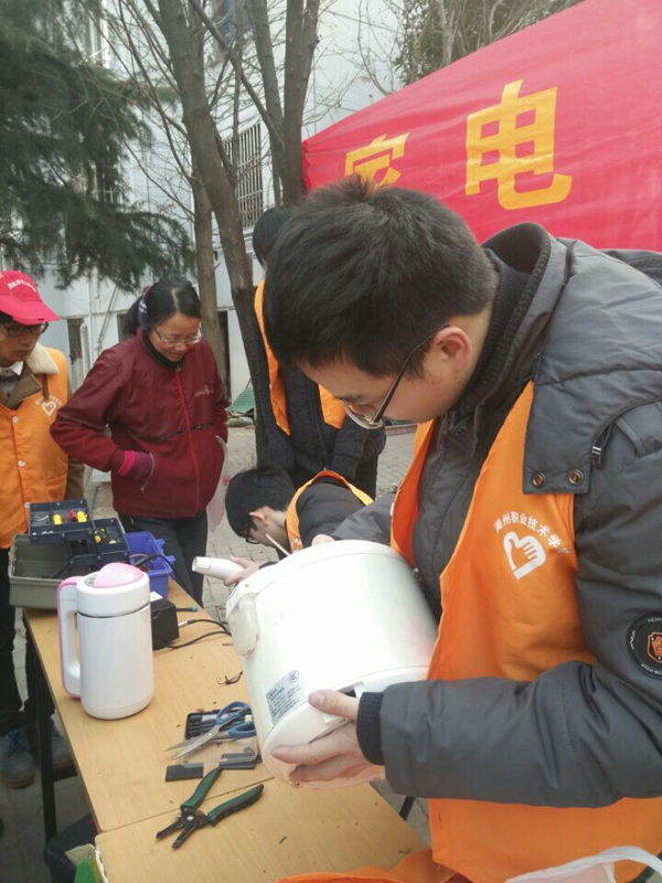 “家电维修”专业技能显成效。12月末,分院创新团队的同学们将“技能”送入了墙壕里社区,利用专业优势,为社区居民维修一些故障家电。活动中,前来维修的居民络绎不绝,待维修的小家电也是五花八门,如遥控器、电吹风、台灯、收音机、电饭锅、脱水机等等。同学们通过“望闻问切”,分析故障原因,研究维修方法,最后成功修理了大部分故障家电,为居民生活提供了便利,也使自身的一技之长能运用到社会当中,发挥余温。