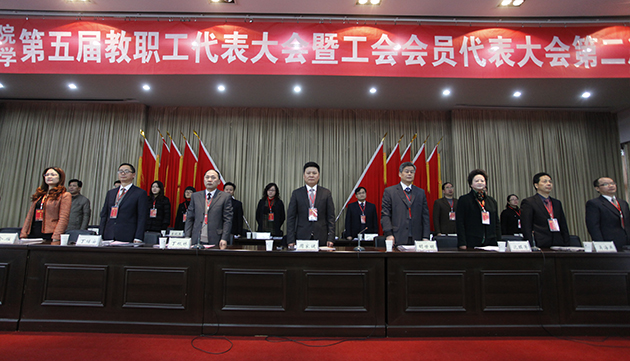 1月18日上午,学校五届二次“双代会”在行政楼1号报告厅隆重开幕。121名正式代表、3名特邀代表和23名列席代表参加会议。