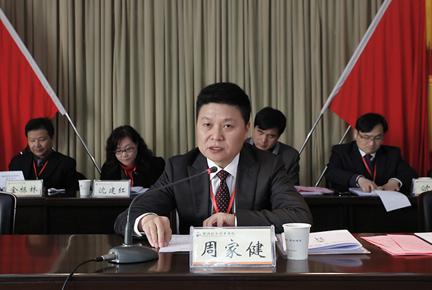周家健强调,要科学谋划全面深化改革的路径选择。一是要以绩效工资改革和专业技术职务评聘导向的改革为重点,全面深化教师评价激励机制改革,强化教师在办学中的主体地位,进一步全面落实育人为本的理念。二是要以专业、院系调整为重点,全面深化二级管理体制改革,激发二级单位办学活力,进一步强化学校专业特色和人才培养特色。三是要以规范教师准入制度为重点,全面深化人才队伍分类管理改革,进一步做足总量,优化结构,提升学术和技术技能水平。四是要以选用好新一届中层干部队伍为重点,全面深化干部选拔任用制度改革,全面落实从严治党、从严管理干部,建立一支适应新常态、干事创业、清廉务实的干部队伍。五是要以办好民生实事为重点,全面深化和谐校园建设,努力把学校建设成师生共建共享的精神家园。六是要以加快推进八里店实训基地建设和南浔校区建设为重点,全面深化学校、政府、企业合作机制改革,全面拓展和盘活校内外办学资源,进一步扩大学校的辐射力、影响力。七是要以学校《章程》建设和完善教代会制度为重点,全面深化依法治校、民主治校改革,探索建立符合校情,具有高职特点的现代职教校本治理结构。
