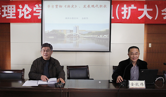 1月21日,学校党委理论学习中心组(扩大)会议在2号报告厅举行。湖州市教育局副局长金毅伟应邀作了题为《学习贯彻<决定>,发展现代职教》的专题辅导报告。学校党政领导班子、中层干部、各民主党派、知联会负责人及系主任、研发机构负责人参加会议。会议由校长胡世明主持。