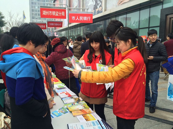 3月14日上午8时30分左右,工商管理分院组织志愿者参加了湖州市消费者权益保护委员会在新浙北大厦购物中心广场前举办的3.15维权大型广场咨询活动,今年的消费年主题是‘携手共治、畅享消费’,维护安全和谐的消费环境人人有责。工商管理分院的志愿者们以饱满的热情接待和引导市民前来咨询和投诉。