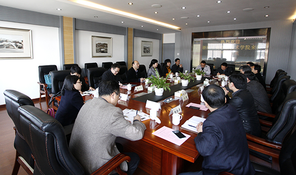 3月24日,浙江工商职业技术学院党委副书记俞位增、纪委书记邱素芬一行来校考察交流。校领导胡世明、丁根林、吴海燕及组织部、人事处、机电工程分院负责人参加座谈交流。