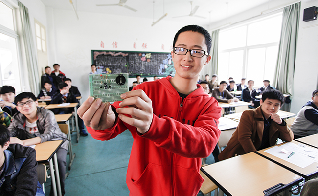 候考区,考生展示自制芯片