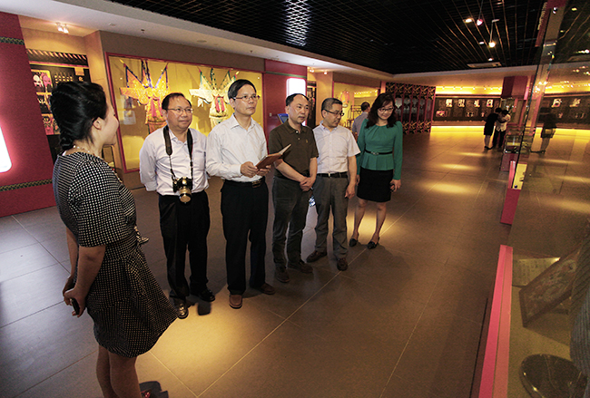 5月7日,由浙江省社会科学界联合会副巡视员周鹤鸣带队、省社科联科普处、杭州市社科联、绍兴市社科联、嘉兴市社科联等负责人组成的省社会科学普及基地评估小组莅临我校,对浙江省社科普及示范基地——包畹蓉京剧服饰艺术馆的社科普及工作进行验收、评估。校党委副书记丁根林及党委宣传部、图书馆等部门负责人陪同考察。