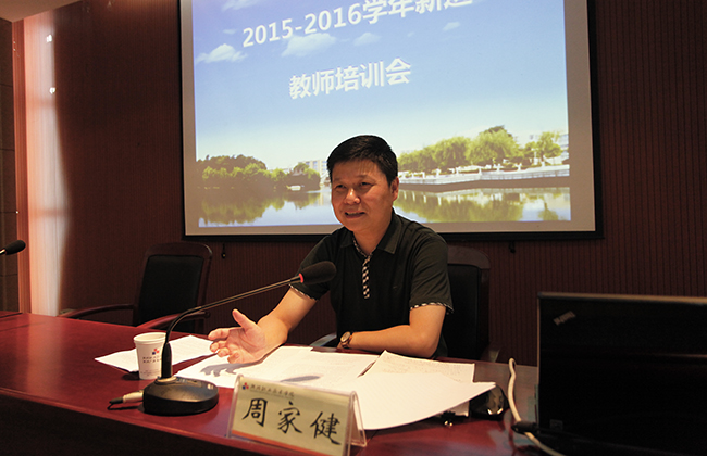 8月29日至31日,我校举行了2015年度新进教师岗前培训工作,培训对象为2015年新入校的32名教师,校党委书记周家健、副校长丁继安、金雁出席相关活动,培训由人事处处长陆勤丰主持。