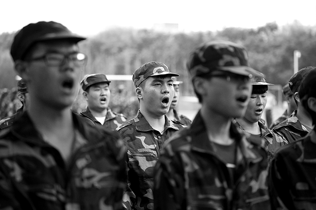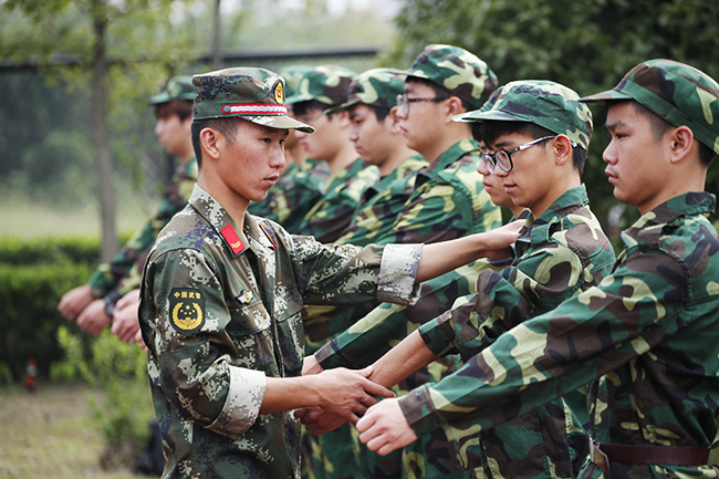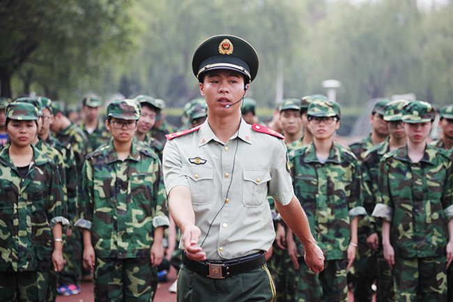 “崇德尚能,升华自我,磨砺青春,矢志报国。”站着笔挺的军姿,踏着整齐的步伐,喊着嘹亮的口号,从9月21日起,在学校田径场、篮球场,随处可见身着迷彩服的大一新生,他们在烈日洗礼下磨炼意志,砥砺自己,为开启大学生活写下浓墨重彩的一笔。据人武部介绍,目前,退伍复学的20名学生中共有9名担任助理教官,协助军训活动开展,成为了此次军训的一大亮点。(文/摄 许少华)