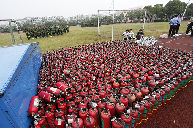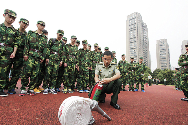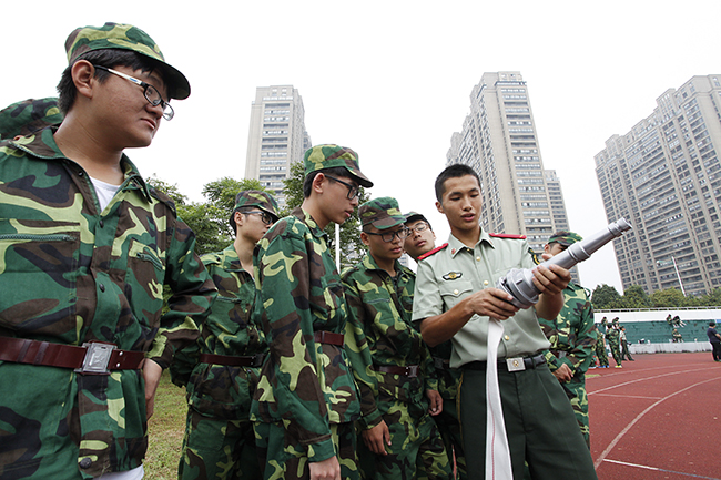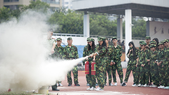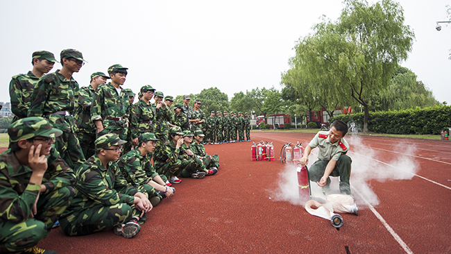 为加强全体新生消防安全意识,9月25日,全体大一新生在田径场集合,接受消防安全知识培训和消防灭火技能训练,听取全体教官及学生处、保卫处工作人员消防知识讲解,了解干粉灭火器及水带使用方法,开展寝室逃生演习,整个过程迅速而有序。 (文/摄 杨勇平 吴泽力 许少华)