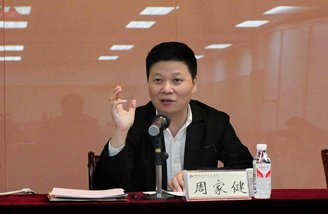 校党委书记、农民学院管委会副主任周家健在开班仪式中向全体学员介绍了湖州的简要概况以及湖州农民学院的办学概况,并以 “‘两山’理论指引‘三农’发展”为主题,向全体学员介绍了湖州市在 “两山”理论的指引下,不断求证发展经济和保护生态之间的辩证关系的主要做法。