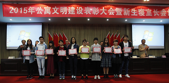 为了进一步落实省教育工委、教育厅《关于深入开展学校文明寝室建设的通知》文件精神,在全体学生中营造学习先进、争创先进的公寓文明建设氛围,切实培育和践行社会主义核心价值观,深入推进公寓文明建设,10月29日,学校公寓文明建设2015年度表彰大会暨新生寝室长会议顺利召开。校党委副书记丁根林出席了会议,学工部、校团委、各二级学院学生工作负责人、公寓中心负责人、公寓辅导员及寝室长代表等360余人参加了本次会议。