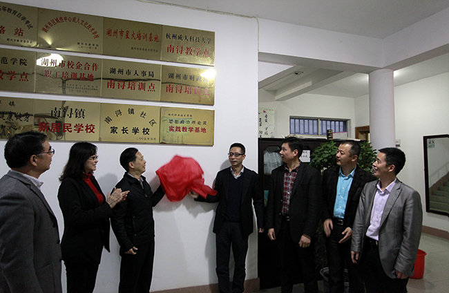 为进一步贯彻落实全省高校思想政治工作会议精神和省委宣传部、省委教育工委关于开展“百校联百镇”活动的要求,经前期酝酿协调准备,11月17日,我校与南浔区南浔镇合作共建浙江省高校思想政治理论课实践教学基地在南浔镇正式揭牌。南浔区委常委、镇党委书记姚昌喜,镇长屠赞宏,我校纪委书记吴海燕,党委委员、宣传部长沈建红,思政理论教研部、校团委负责人,思政理论课教师代表和南浔镇机关干部代表参加揭牌仪式。