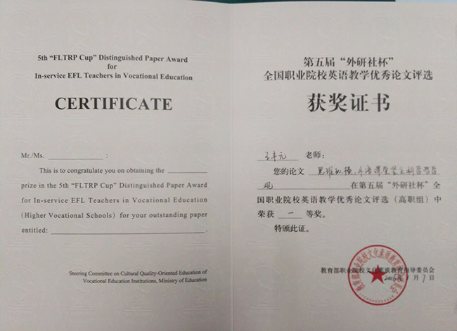 日前,该系列比赛落下帷幕。我校教师发挥出色,获得多项好成绩。其中,我校卢敏老师提交的《目标驱动下的职场英语教学改革与课堂实践--以湖州职业技术学院为例》、王丰元老师提交的《思维纵横:外语课堂竖立科学哲学观》、何燕老师提交的《基于语料库的职场英语互动教学研究》分获第五届“外研社杯”全国职业院校英语教学论文大赛一等奖,董娴静老师提交的《中高职衔接英语课堂教学改革的尝试》获得该论文大赛二等奖;罗雨老师设计的《Unit 8 Have Got A Plan?》获得首届全国职业院校英语教师教学设计大赛三等奖。 (文/卢敏)
