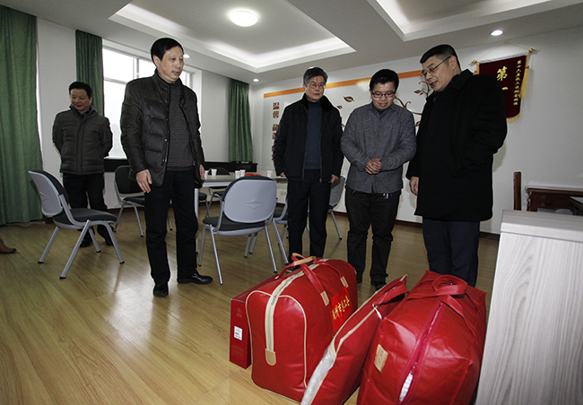 1月22日下午,市总工会权保部王锡荣部长、市教育工会主席高剑峰、学校校长胡世明一同看望慰问了罗春潇老师,还分别代表市总工会、市教育工会、学校送上了慰问金和慰问品。