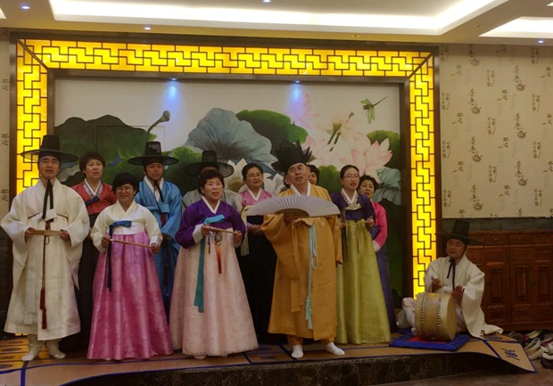 双方就礼茶文化进行了探讨和交流。我校学生表演的《采茶舞》、茶艺和古筝弹奏得到了韩方代表的高度评价。礼茶乐文化协会成员表演了韩国传统茶道《文人饮茶会》和说唱节目《四季歌》。韩国茶道的严谨,说唱艺术的大气磅礴也让我方受益匪浅。